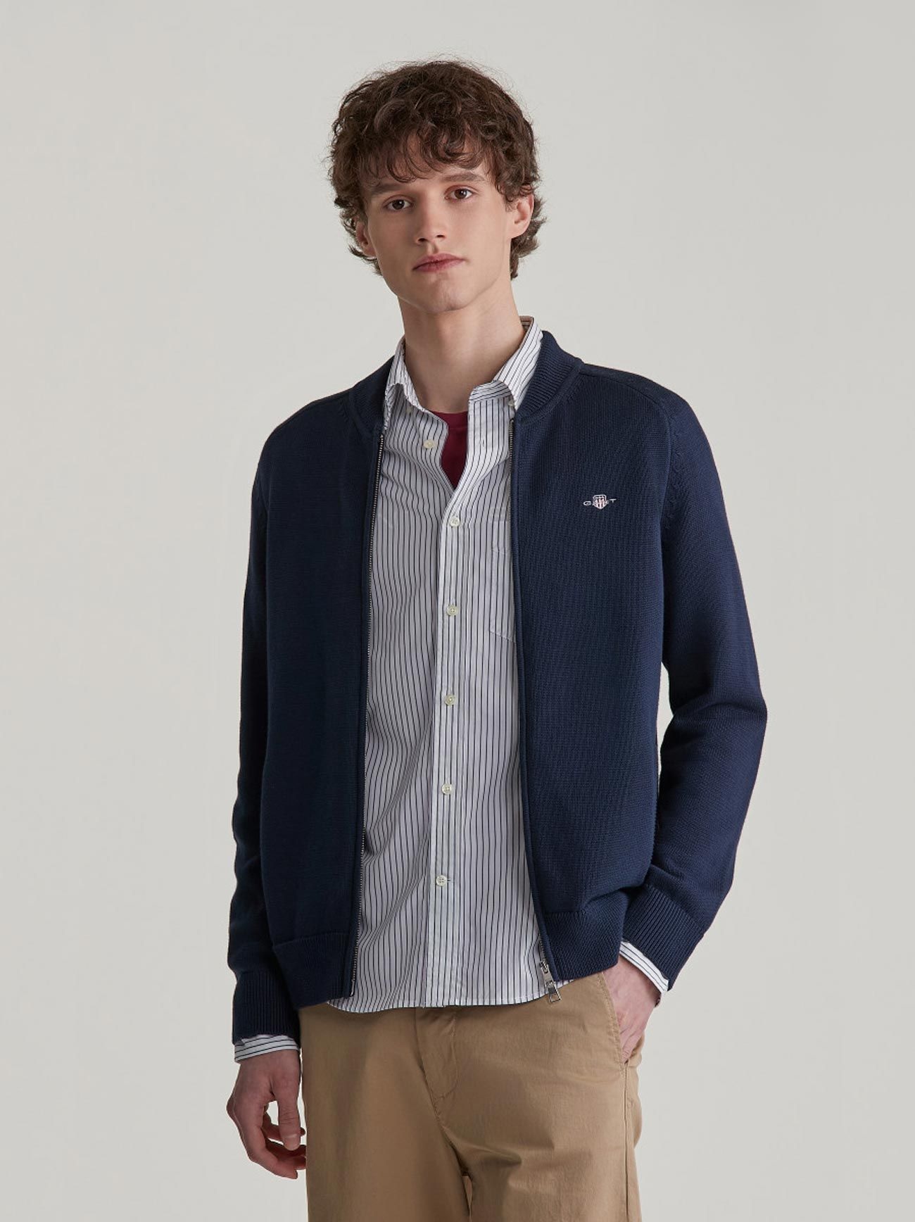 Cardigan estilo Bomber GANT combina estilo clássico com conforto moderno. Feito em algodão para um conforto e suavidade superior, é perfeito para o dia a dia ou para compor um look casual mais elegante.