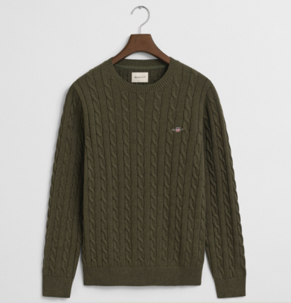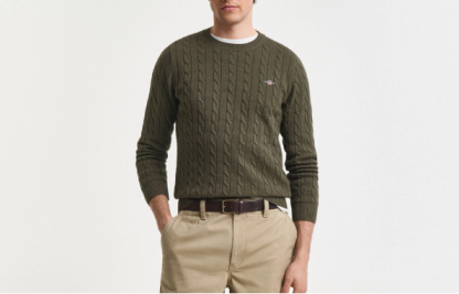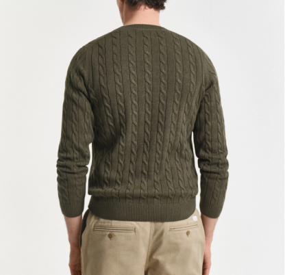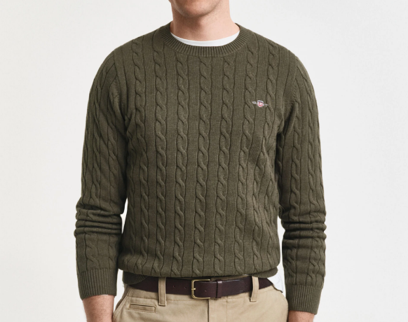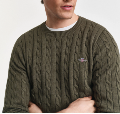 Com decote redondo e um bonito padrão de torcidos, esta peça destaca-se pelo seu design tradicional com um toque moderno. O bordado GANT discreto ao peito, no lado esquerdo, adiciona um detalhe subtil de sofisticação e autenticidade.