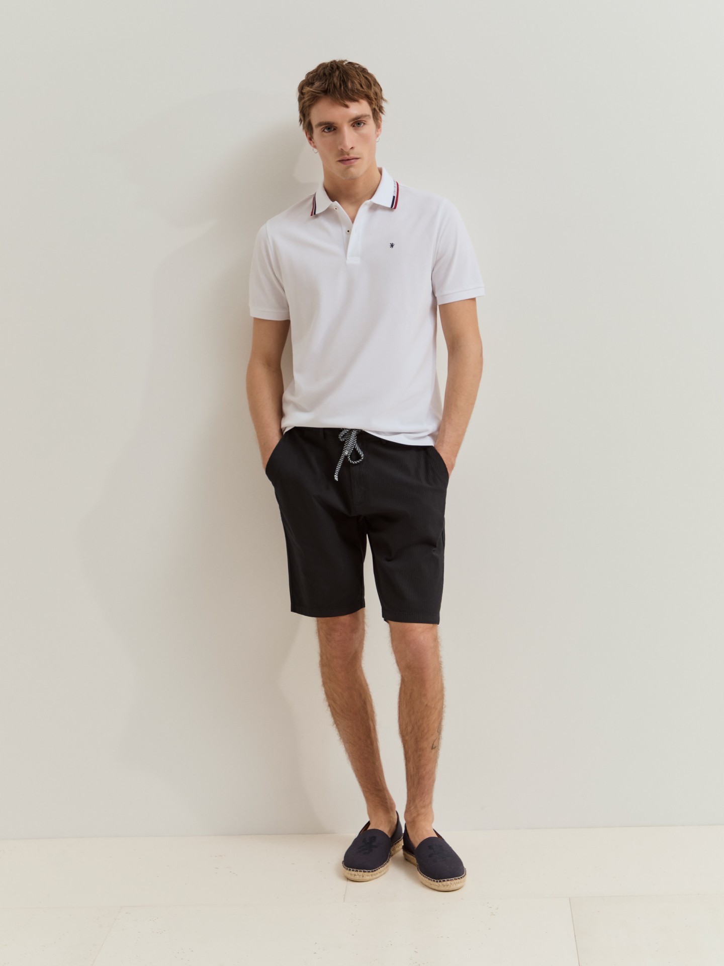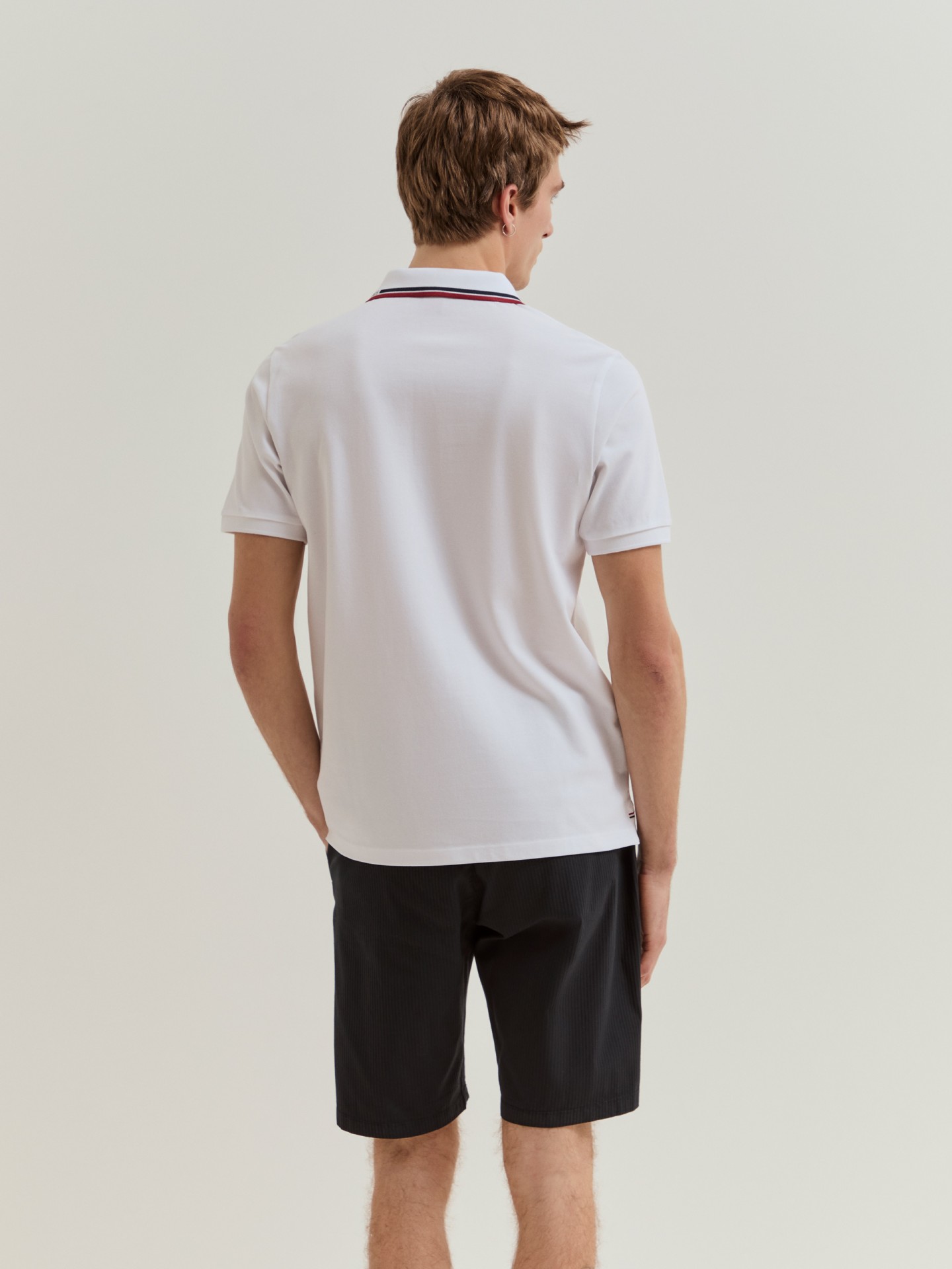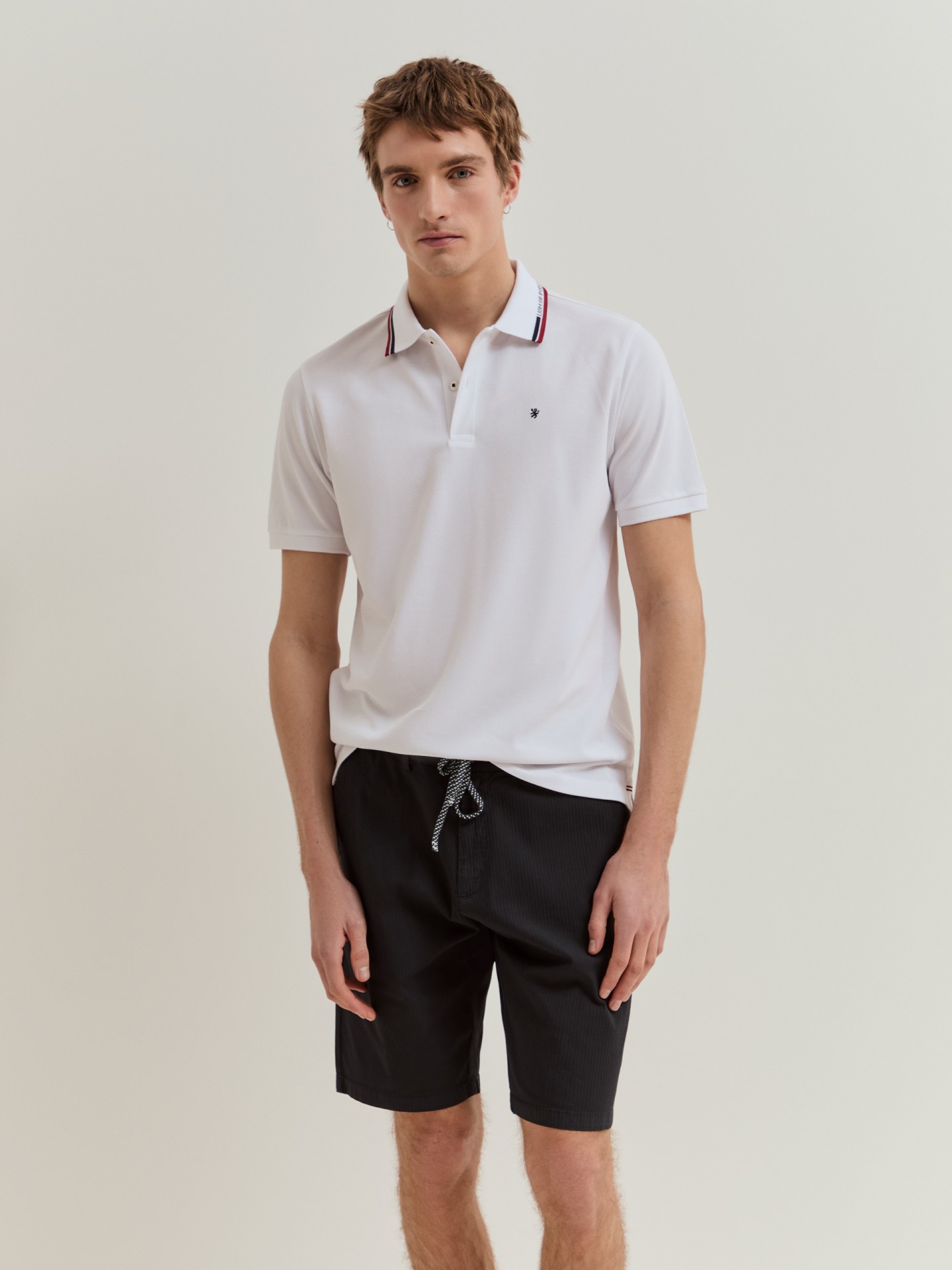 Polo de manga curta em corte regular fit confecionado em 100% algodão. A gola de estilo camiseiro destaca-se pelo detalhe de riscas em contraste e pelo nome da marca integrado. Com o emblema da marca bordado no peito, é uma peça essencial que combina estilo e descontração.