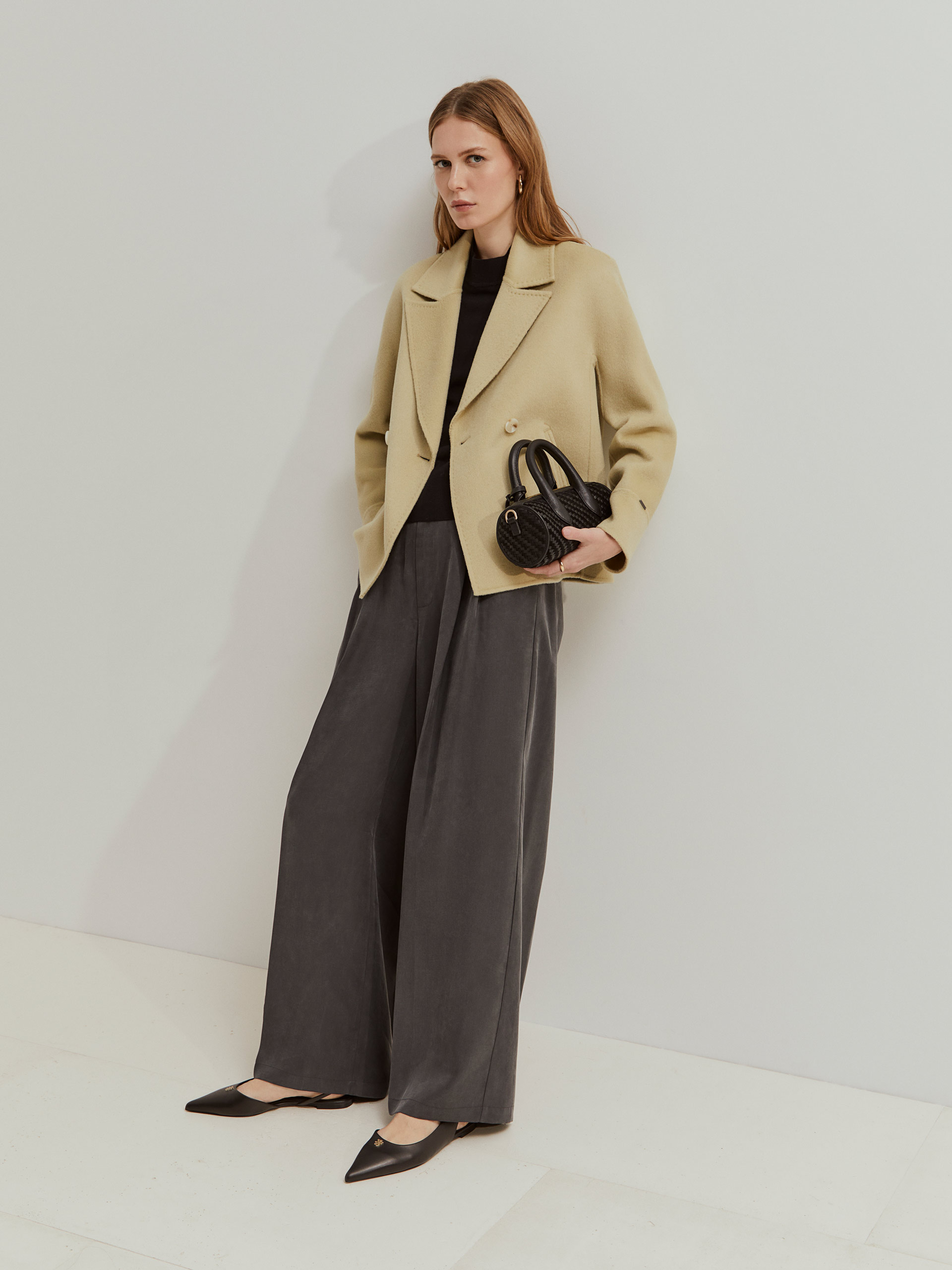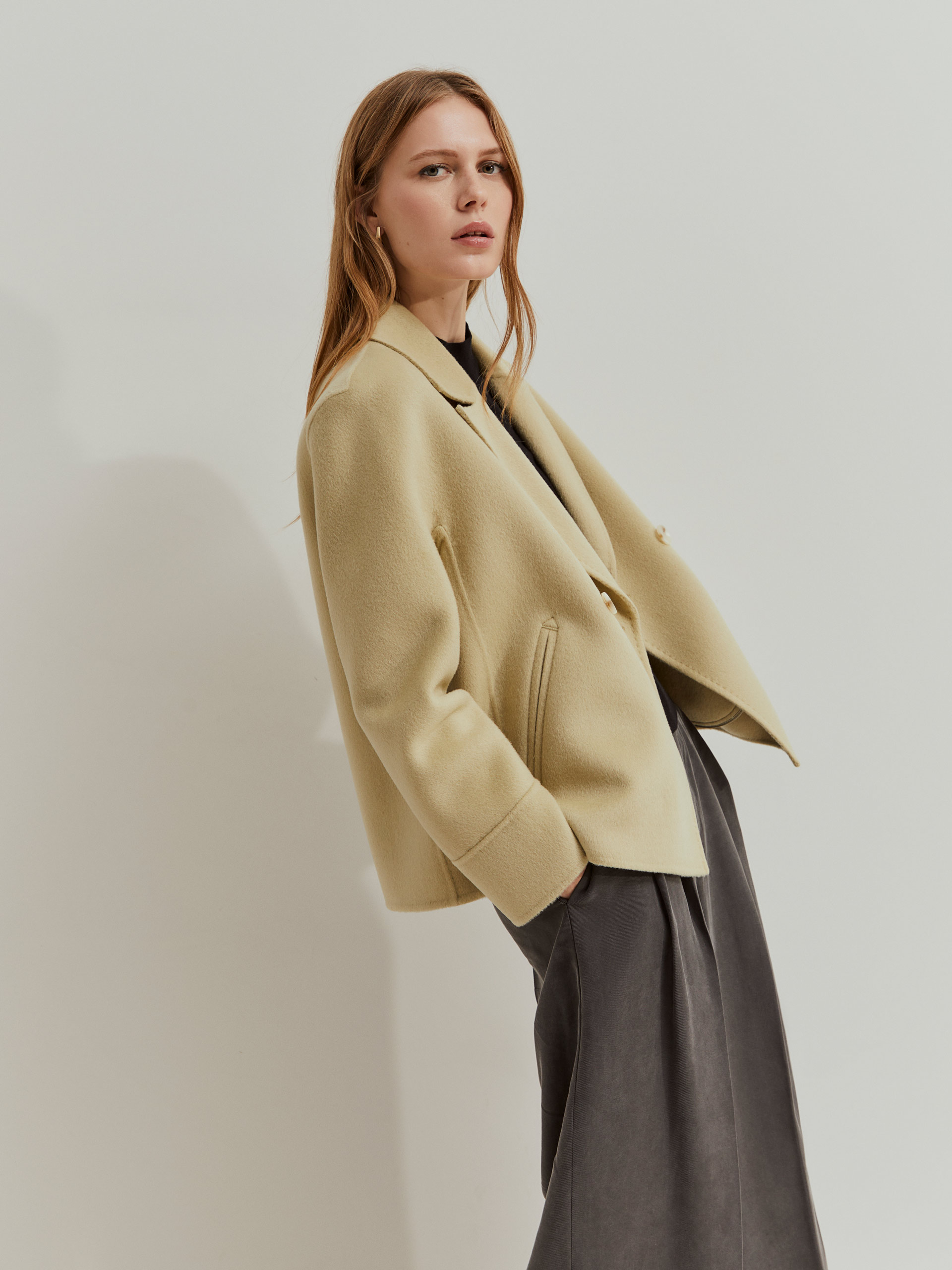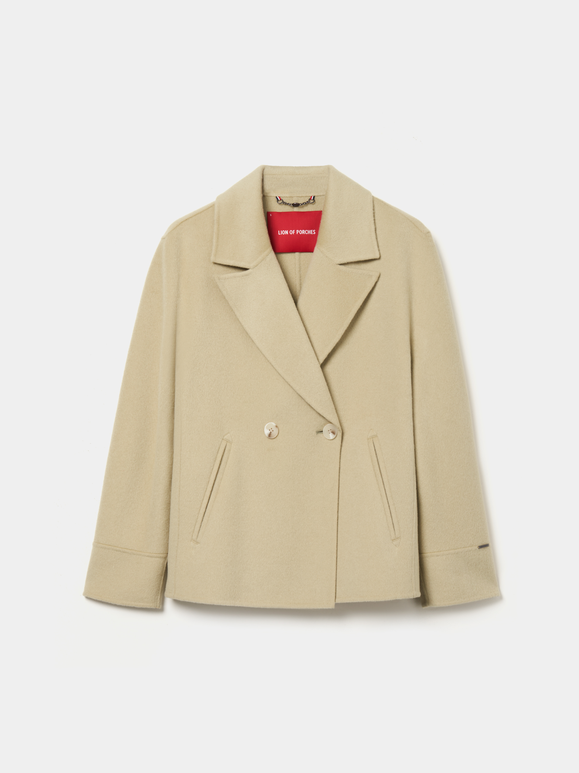 Um sobretudo curto confecionado na totalidade em lã, que combina estilo clássico com toque moderno. O aperto de trespasse na frente e a gola de rebuço conferem personalidade e sofisticação, enquanto os bolsos de vivos unem funcionalidade e design refinado. Uma peça versátil para looks urbanos ou ocasiões formais.