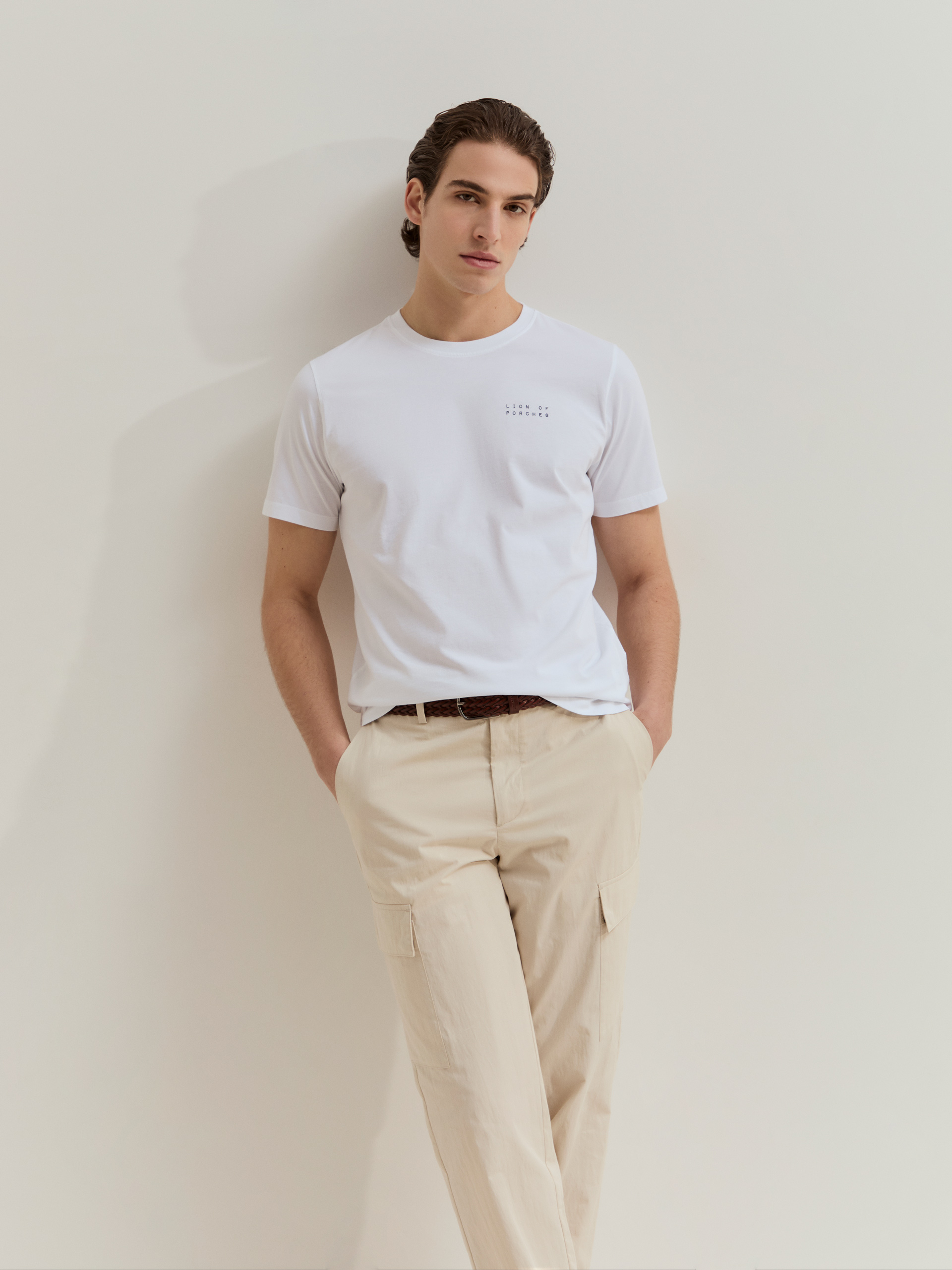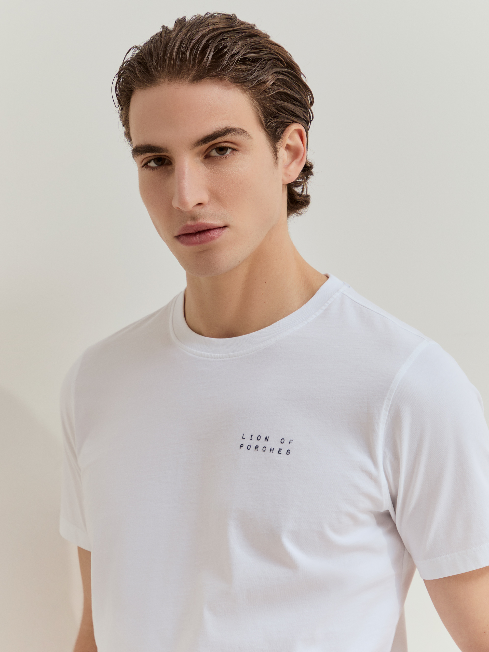 T-shirt de manga curta confeccionada em algodão para maior conforto e suavidade. Com estampado Lion of Porches em contraste no peito.