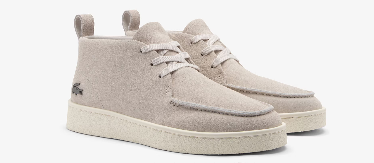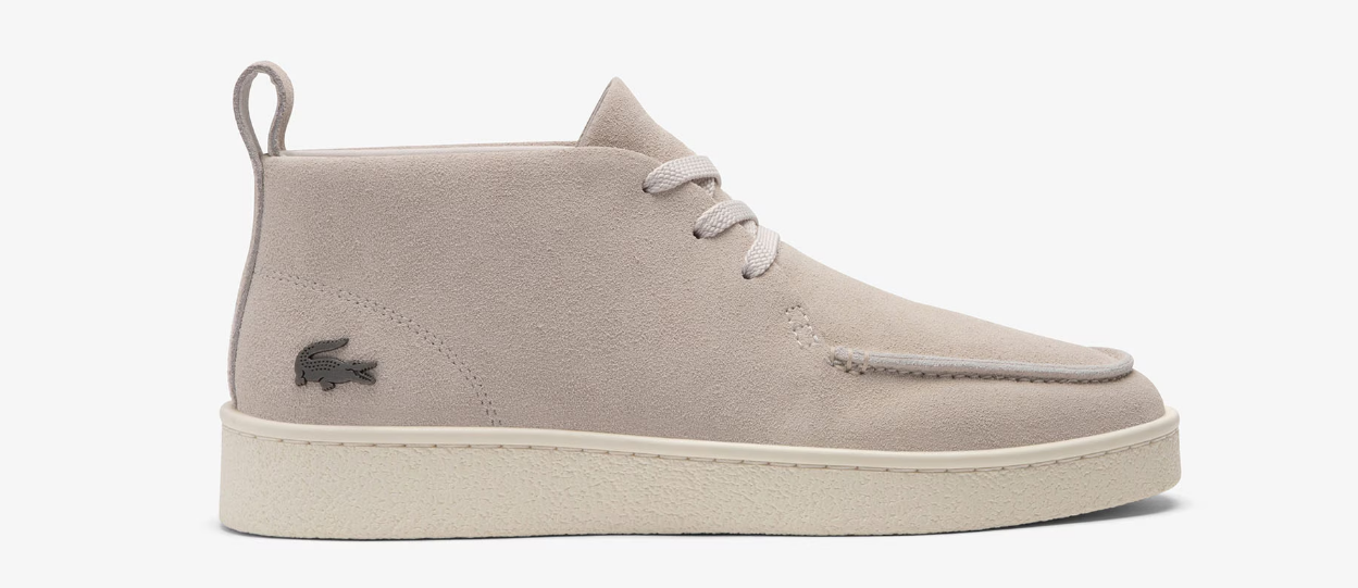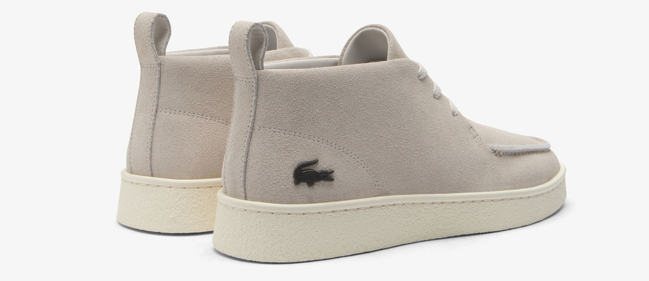 O design clássico das Baseshot une-se às botas para homem e o resultado são as Baseshot Chukka. Um design semi-alto, com a mesma sola que as Baseshot originais para maior conforto, com uma parte superior em camurça e uma elegante costura arredondada. Um estilo sofisticado, terminado com um crocodilo metálico de assinatura.